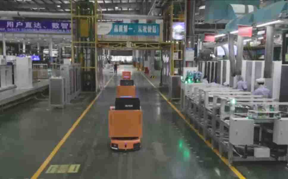 为车载冰箱物流配送打造的智能解决方案,,包含产中物流通过潜伏举升AMR搬运至线边,,,产后成品物流智能仓储,,,流程包含产中物流智能齐套入库,,,,线边安灯叫料AMR智能配送至线边,,成品入库、、、出库,,,通过无人堆高车机器人,,,,智能仓储管理替代人工作业管理,,实现更高存储、、、更高效率、、、更具柔性化的解决方案。。。